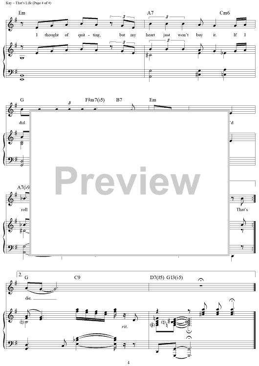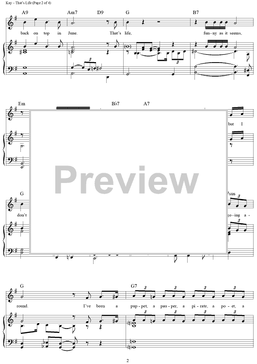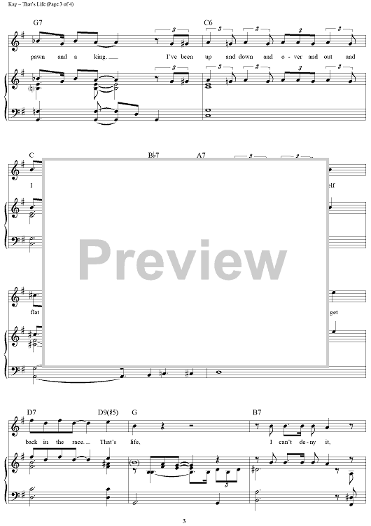 Digital Sheet Music for That's Life by Frank Sinatra, David Lee Roth, Dean Kay, Kelly Gordon, Michael Buble, Jack Mathias scored for Piano/Vocal/Chords; id:363217
