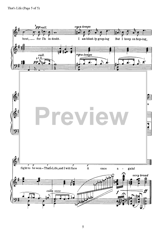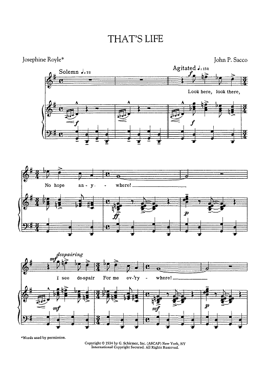Digital Sheet Music for That's Life by John Sacco, Josephine Royle scored for Piano/Vocal; id:466754