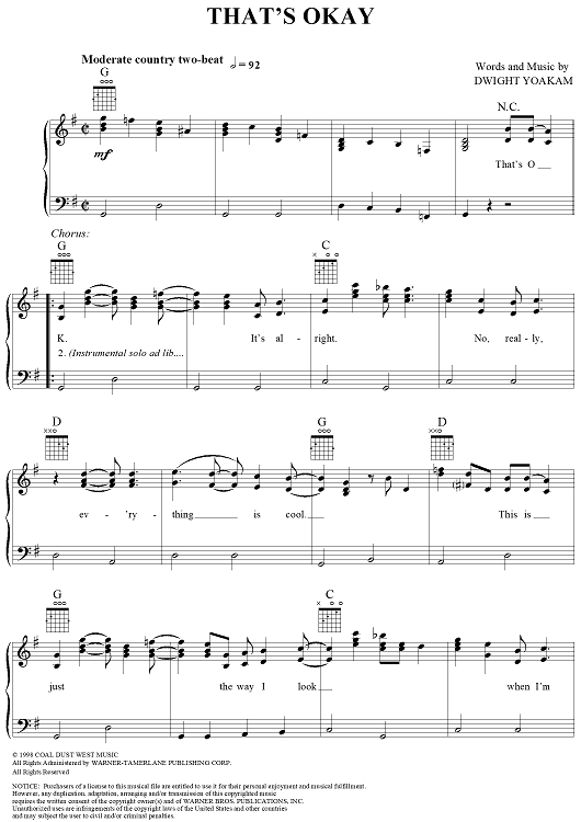 Digital Sheet Music for That's Okay by Dwight Yoakam scored for Piano/Vocal/Chords; id:263199