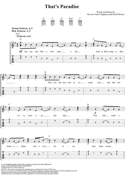 "That's Paradise" Sheet Music by Steven Curtis Chapman