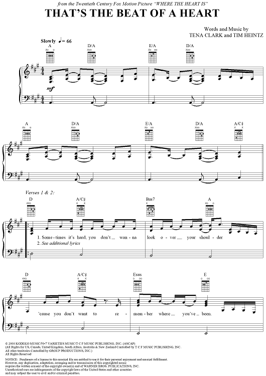 Digital Sheet Music for That's the Beat of a Heart by Sara Evans, Tena Clark, Tim Heintz, The Warren Brothers scored for Piano/Vocal/Chords; id:236641