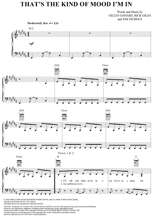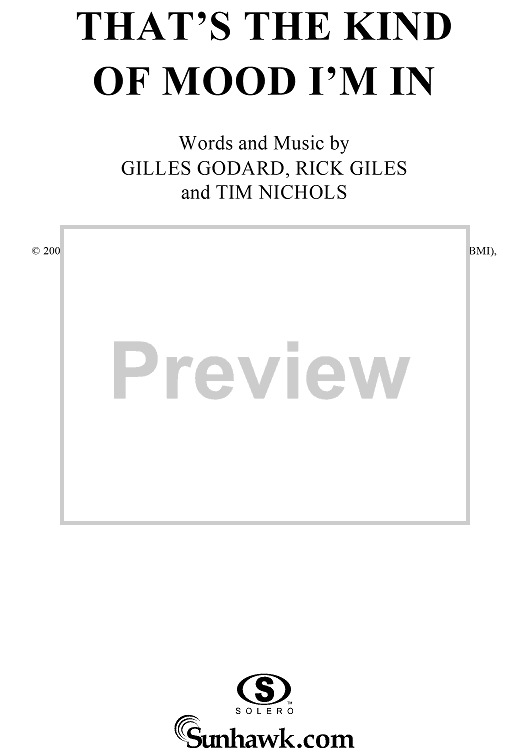 Digital Sheet Music for That's The Kind Of Mood I'm In by Patty Loveless, Rick Giles, Tim Nichols, Gilles Godard scored for Easy Piano/Vocal; id:282944
