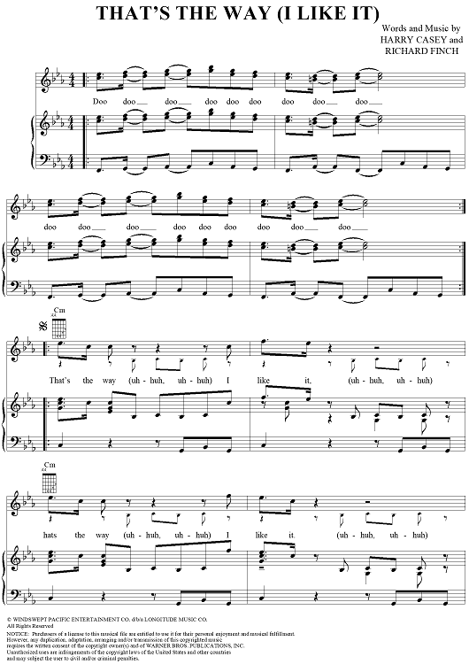 Digital Sheet Music for That's the Way (I Like It) by KC, Richard Finch, KC and the Sunshine Band scored for Piano/Vocal/Chords; id:120005
