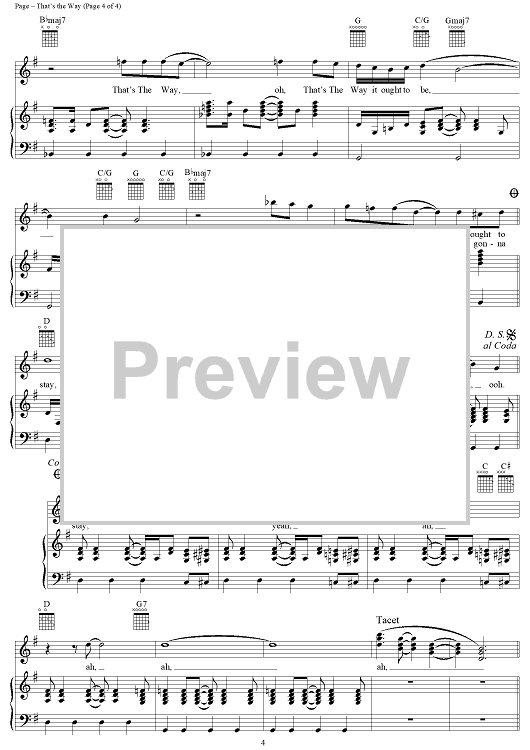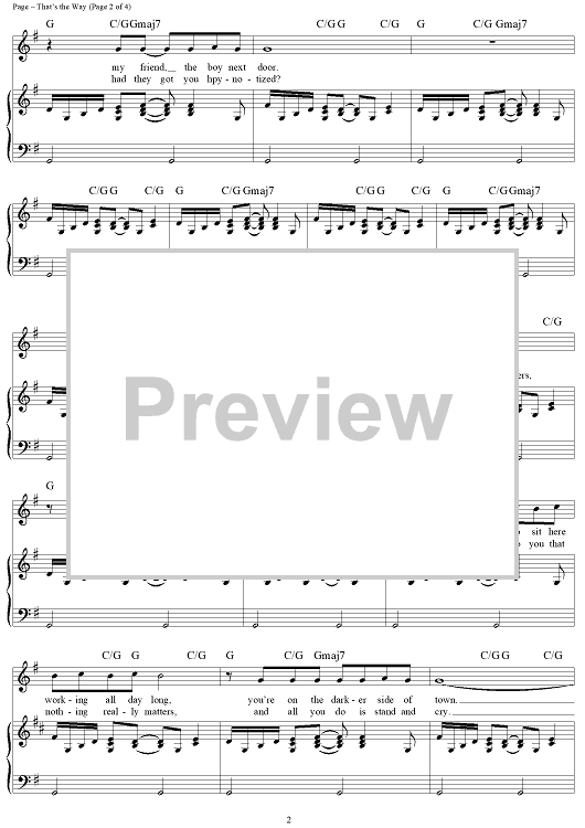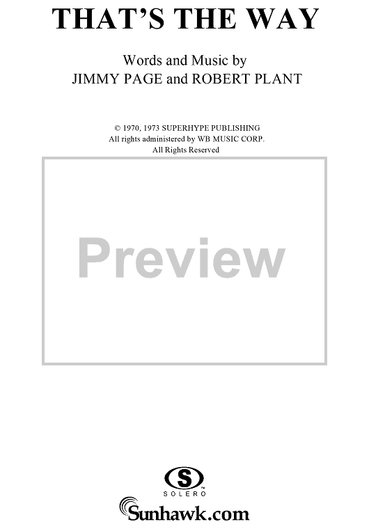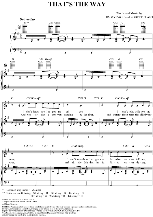 Digital Sheet Music for That's the Way by Jimmy Page, Led Zeppelin, Robert Plant scored for Piano/Vocal/Chords; id:254295