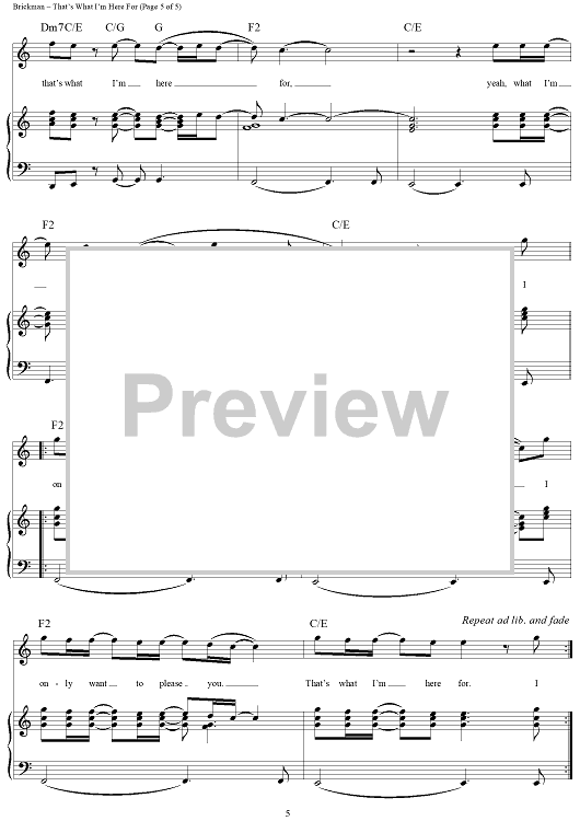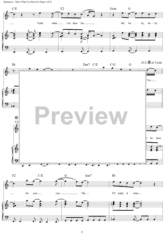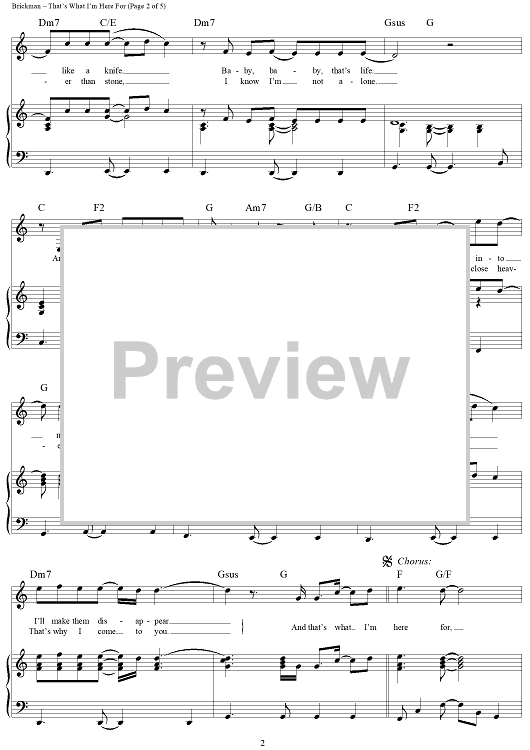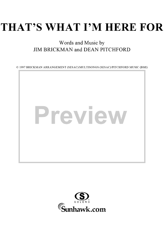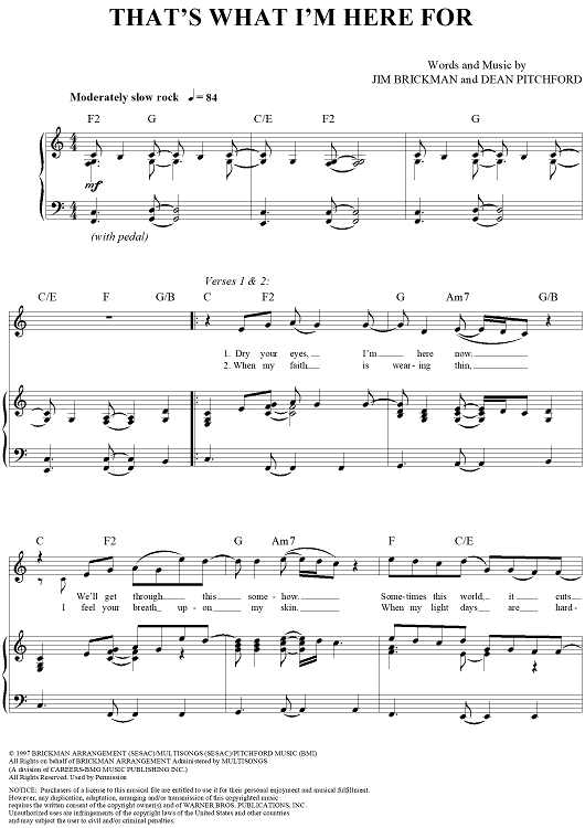 Digital Sheet Music for That's What I'm Here For by Jim Brickman, Dean Pitchford scored for Piano/Vocal/Chords; id:273911