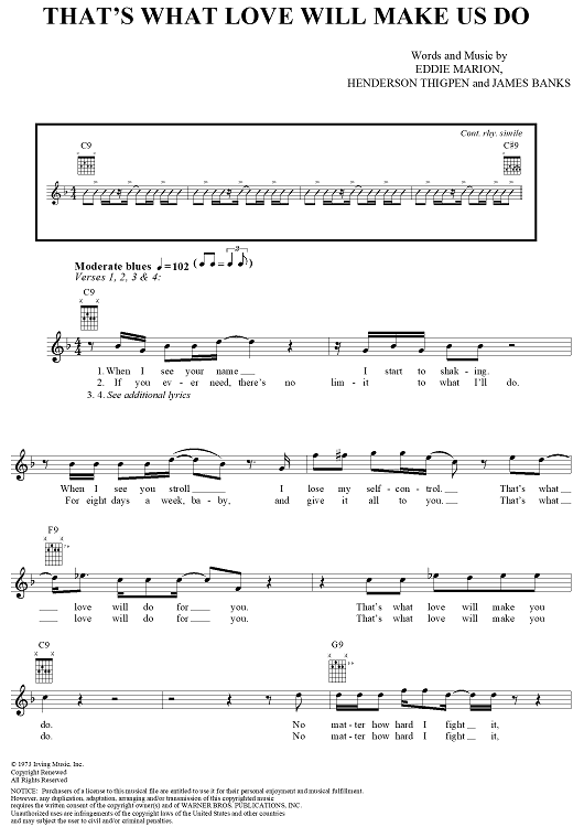 Digital Sheet Music for That's What Love Will Make Us Do by Jerry Garcia, James Banks, Eddie Marion, Henderson Thigpen scored for Easy Guitar/Vocal; id:291730