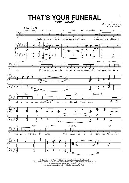 "That's Your Funeral" Sheet Music by Lionel Bart