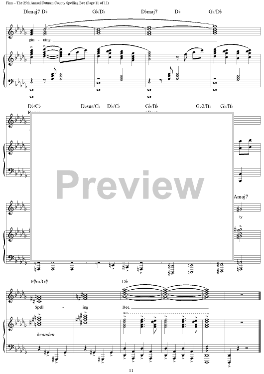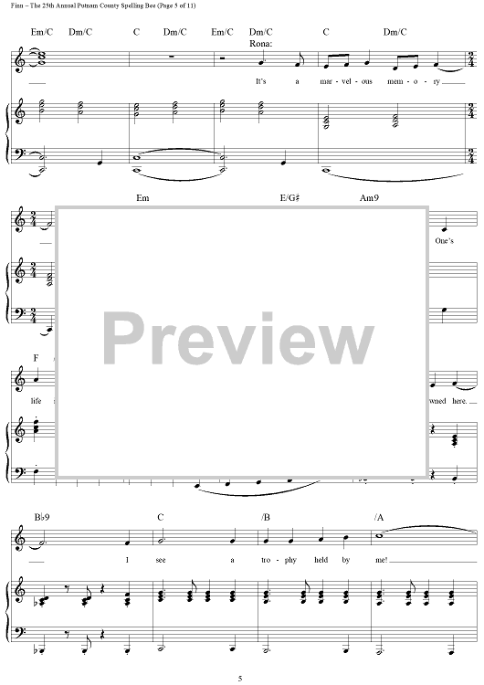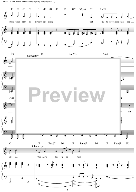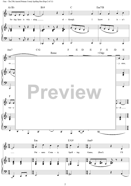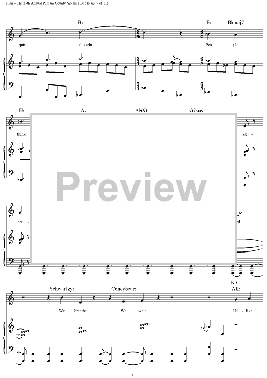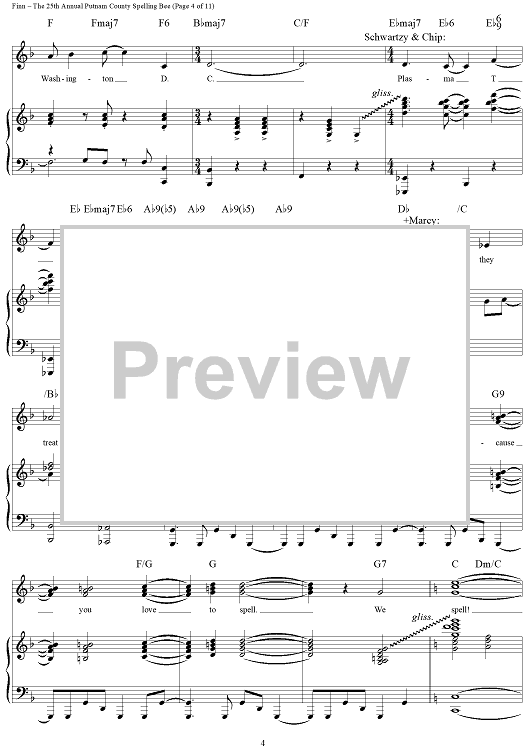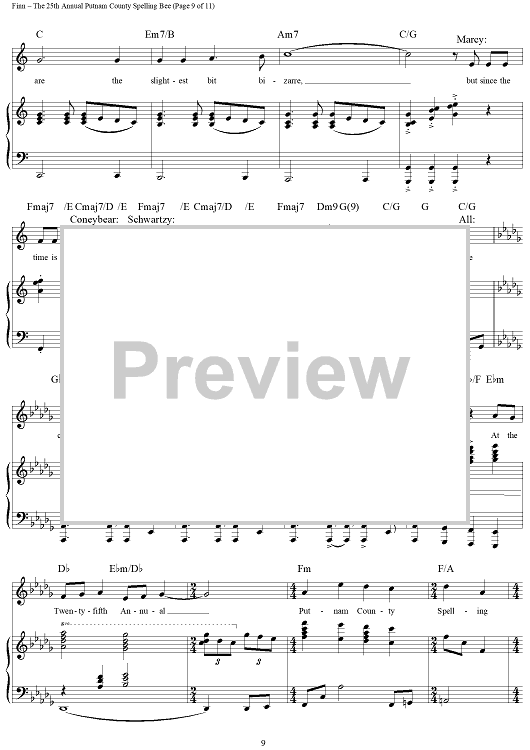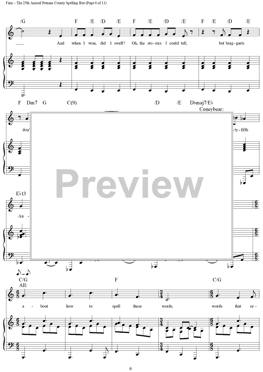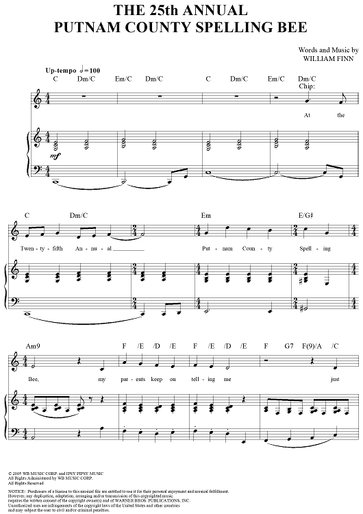 Digital Sheet Music for The 25th Annual Putnam County Spelling Bee by William Finn scored for Piano/Vocal/Chords; id:317816