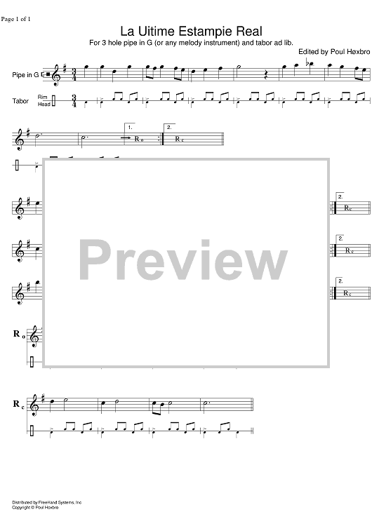 Digital Sheet Music for The 7 Famous French Estampies - Pipe in G by Unknown Writer, Poul Hoxbro scored for G Pipe/Tabor; id:323707