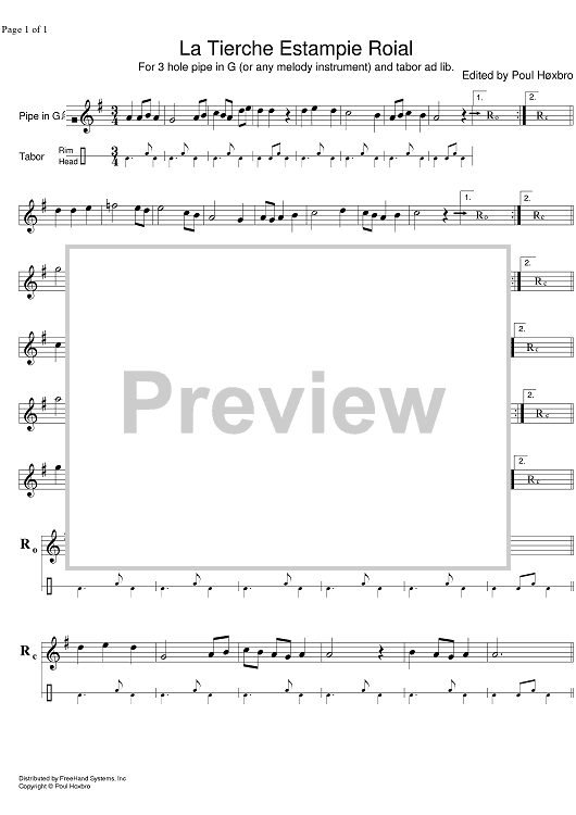 Digital Sheet Music for The 7 Famous French Estampies - Pipe in G by Unknown Writer, Poul Hoxbro scored for G Pipe/Tabor; id:323708