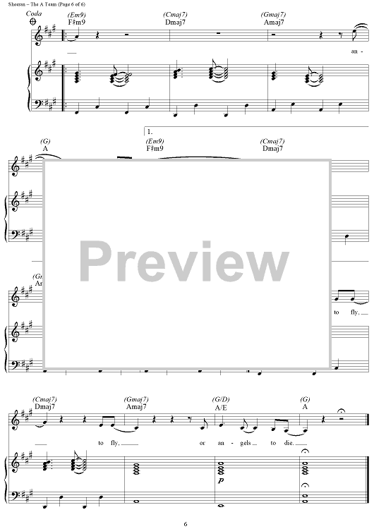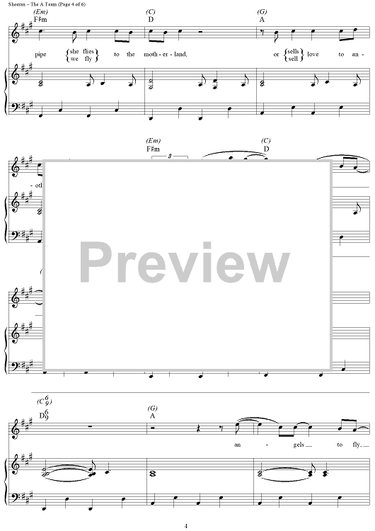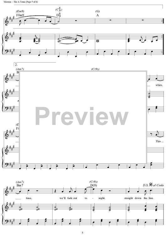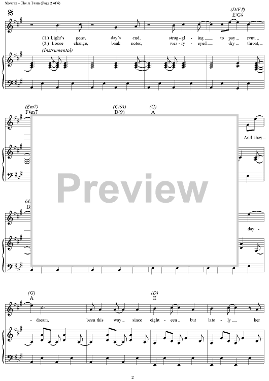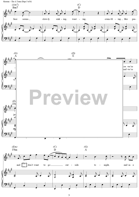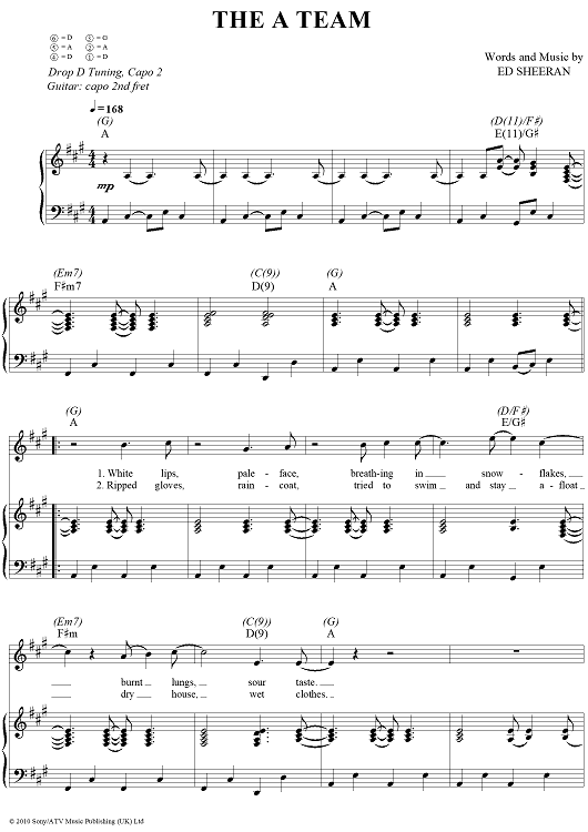 Digital Sheet Music for The A Team by Ed Sheeran scored for Piano/Vocal/Chords; id:429474