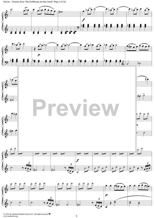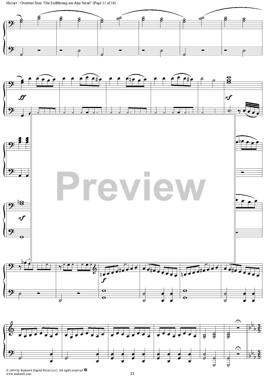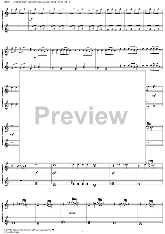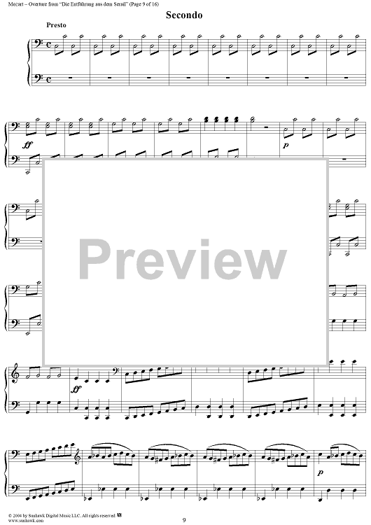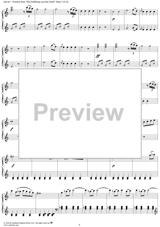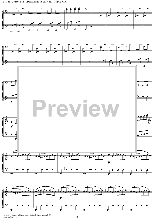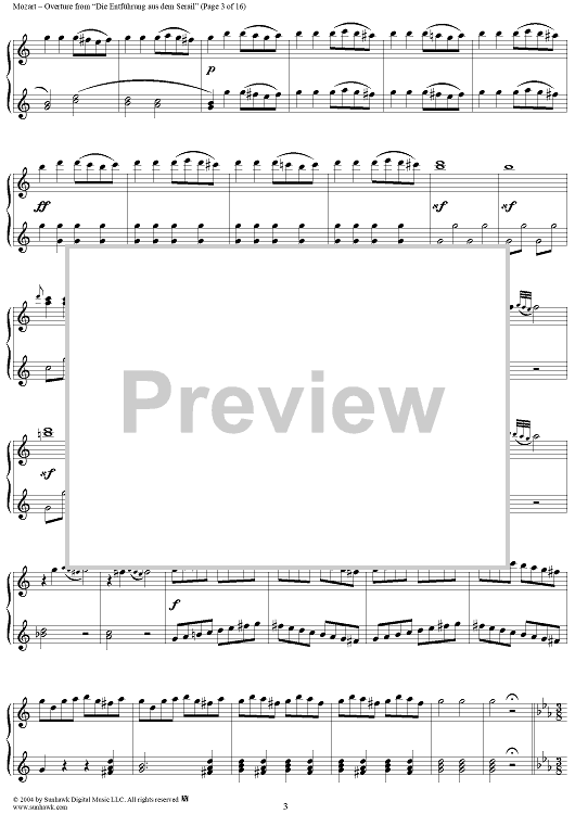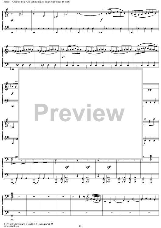 Digital Sheet Music for The Abduction from the Seraglio, Overture, K384 by Wolfgang Amadeus Mozart scored for 1 Piano, 4 Hands; id:295557