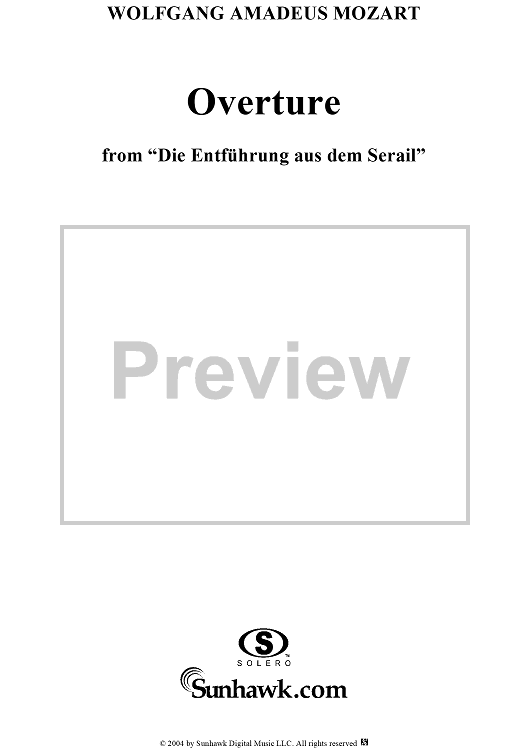 "The Abduction from the Seraglio, Overture, K384" Sheet Music by Wolfgang Amadeus Mozart