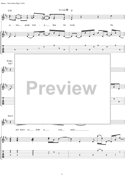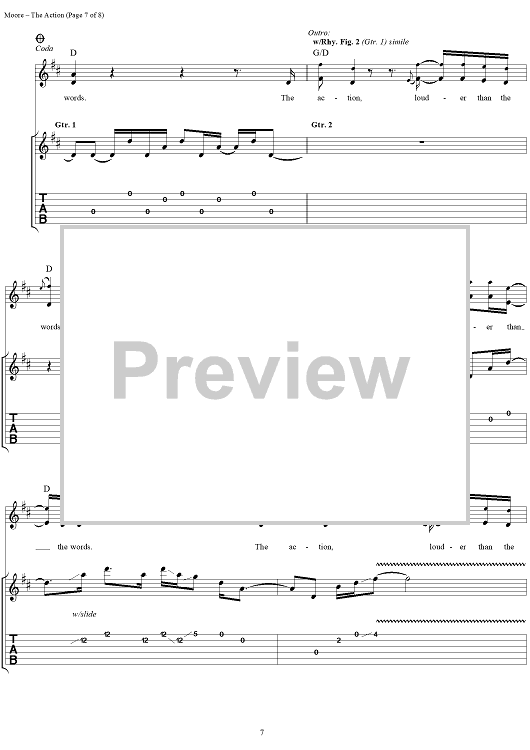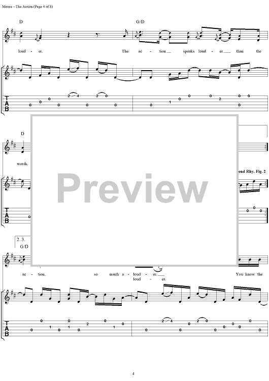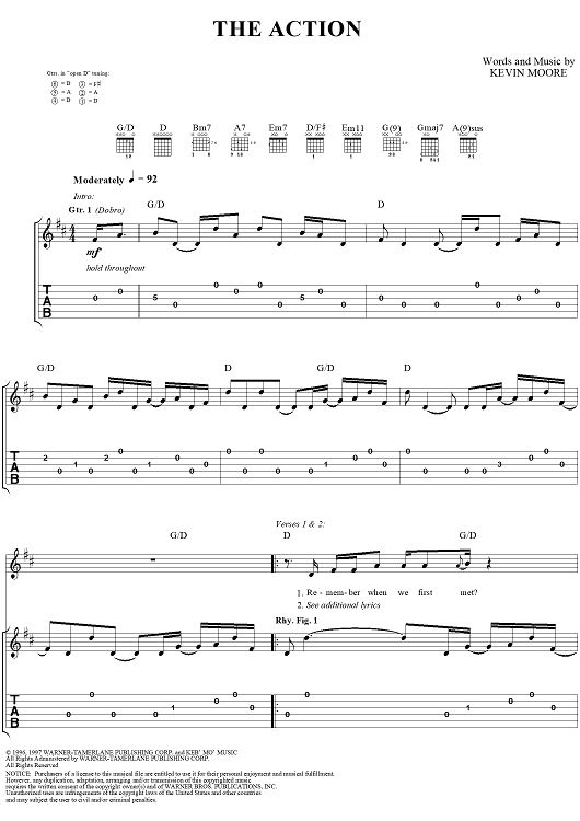 Digital Sheet Music for The Action by Keb' Mo' scored for Guitar Tab/Vocal; id:119727