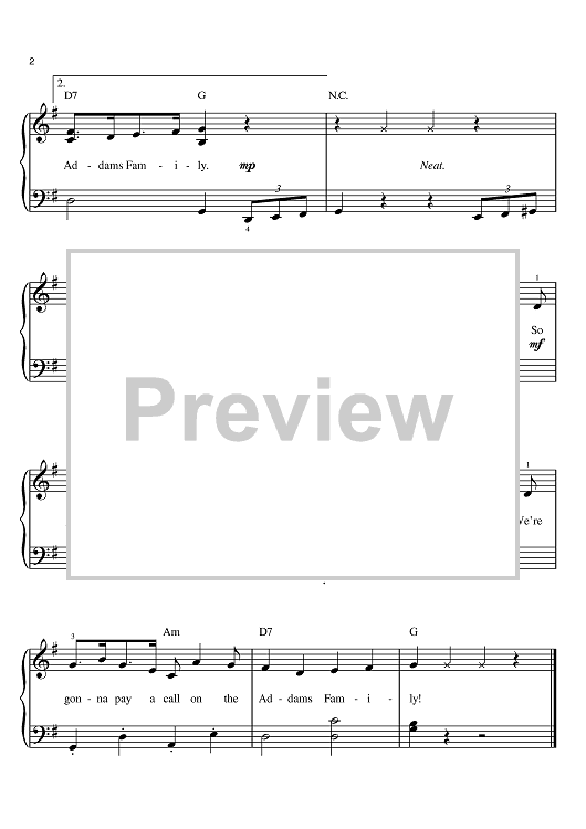 Digital Sheet Music for The Addams Family Theme by Vic Mizzy scored for Easy Piano; id:385313