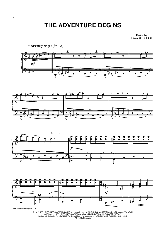 Digital Sheet Music for The Adventure Begins by Howard Shore scored for Piano Solo; id:433844