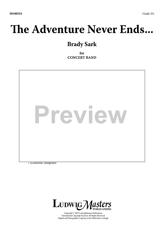 Digital Sheet Music for The Adventure Never Ends - Full Score by Brady Sark scored for Concert Band; id:506960
