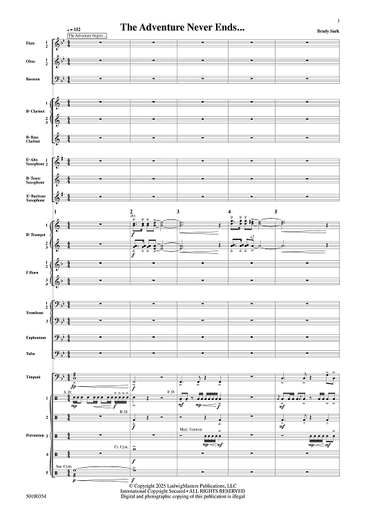 "The Adventure Never Ends - Full Score" Sheet Music by Brady Sark