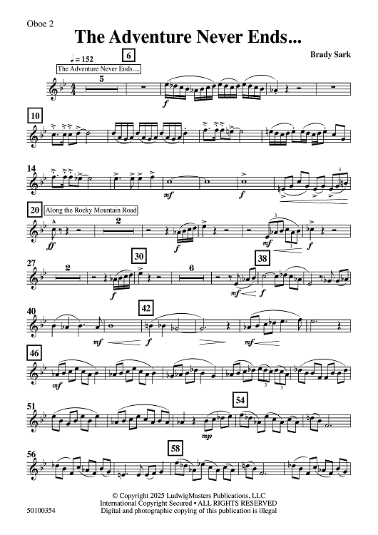 "The Adventure Never Ends - Oboe 2" Sheet Music by Brady Sark