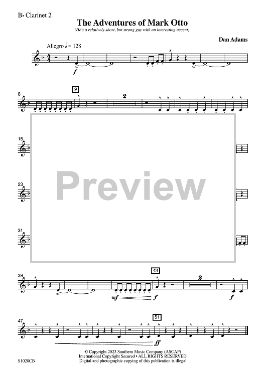 "The Adventures of Mark Otto - Bb Clarinet 2" Sheet Music by Dan Adams