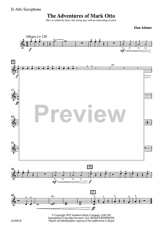 "The Adventures of Mark Otto - Eb Alto Sax" Sheet Music by Dan Adams