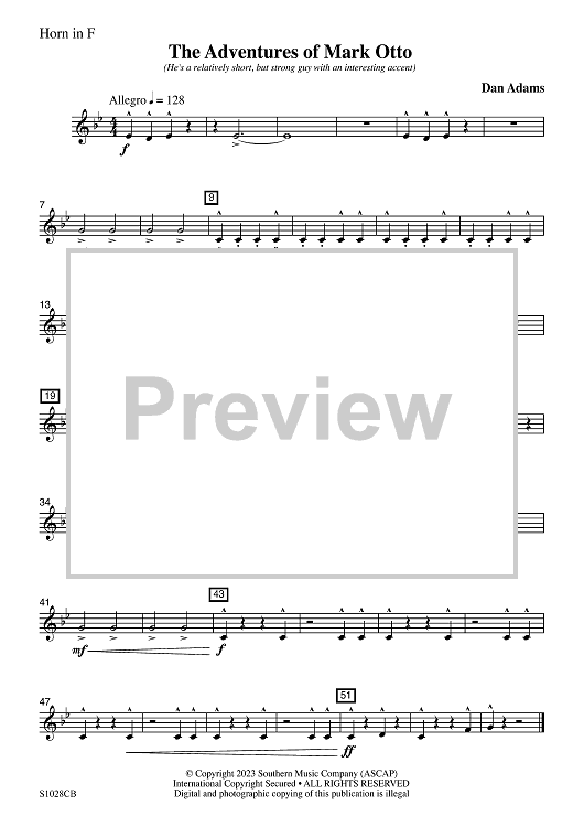 Digital Sheet Music for The Adventures of Mark Otto - F Horn by Dan Adams scored for Concert Band; id:502537