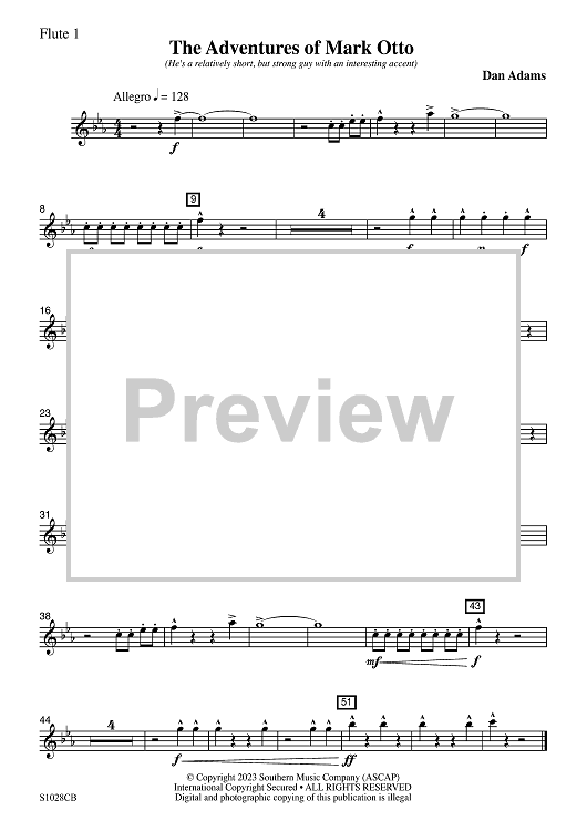 "The Adventures of Mark Otto - Flute 1" Sheet Music by Dan Adams