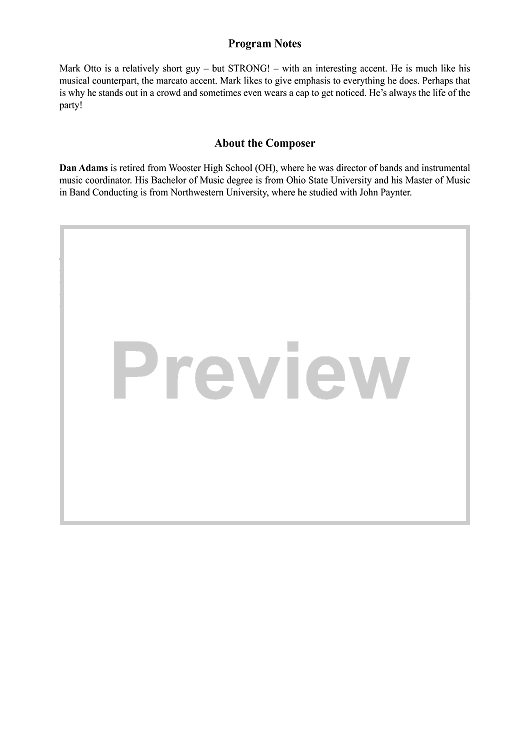 Digital Sheet Music for The Adventures of Mark Otto - Full Score by Dan Adams scored for Concert Band; id:502524