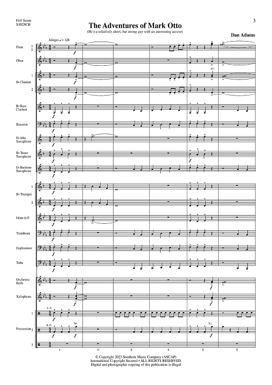 "The Adventures of Mark Otto - Full Score" Sheet Music by Dan Adams