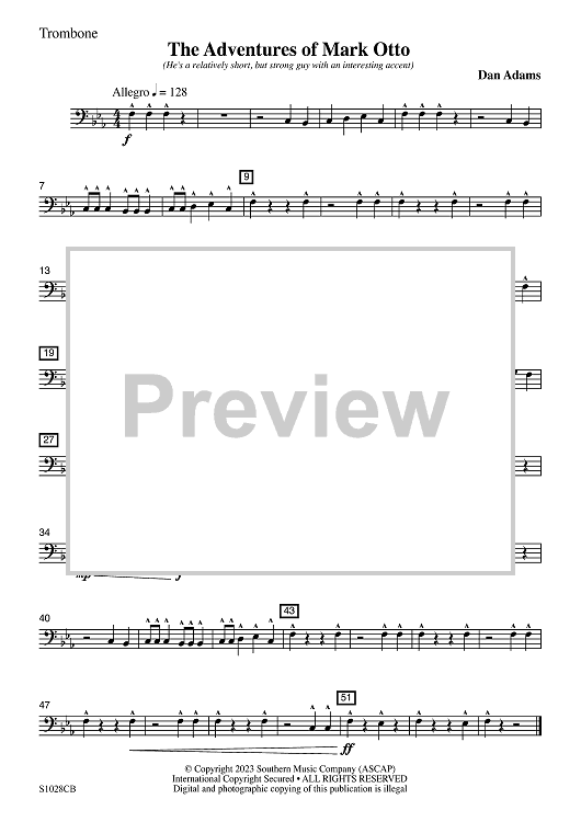 Digital Sheet Music for The Adventures of Mark Otto - Trombone by Dan Adams scored for Concert Band; id:502538