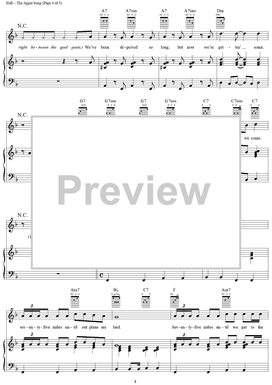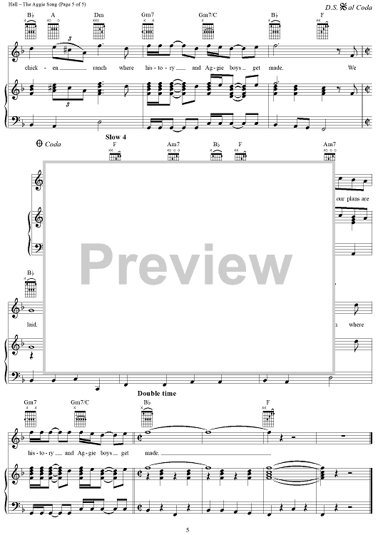 Digital Sheet Music for The Aggie Song by Carol Hall, Ann-Margret scored for Piano/Vocal/Chords; id:286778