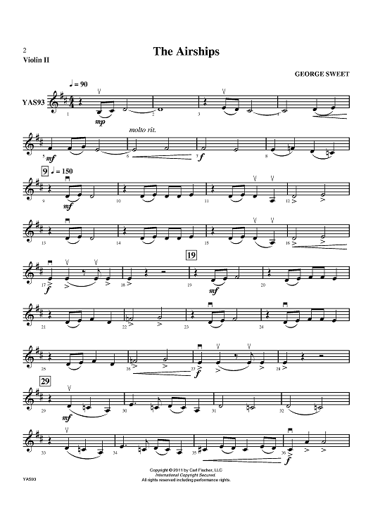 Digital Sheet Music for The Airships - Violin 2 by George Sweet scored for Orchestra; id:419076