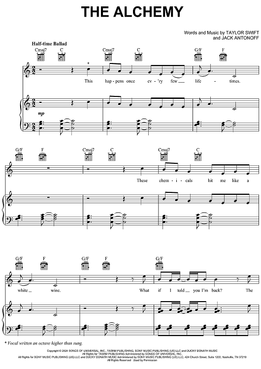 Digital Sheet Music for The Alchemy by Taylor Swift, Jack Antonoff scored for Piano/Vocal/Chords; id:501842