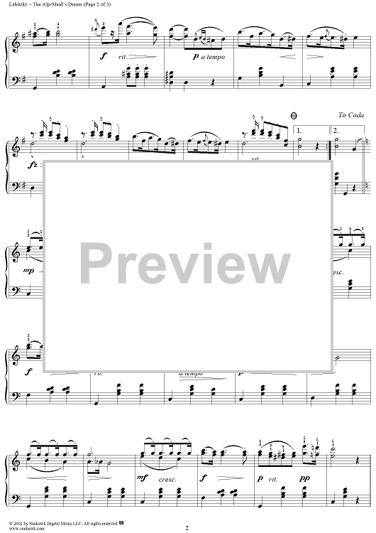 Digital Sheet Music for The Alp-Maid's Dream by August Labitzky scored for Piano Solo; id:277434