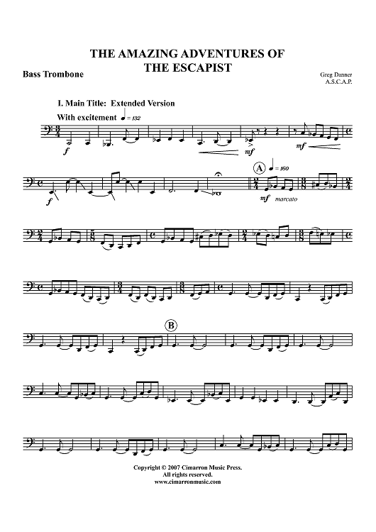 "The Amazing Adventures of The Escapist - Bass Trombone" Sheet Music by Greg Danner