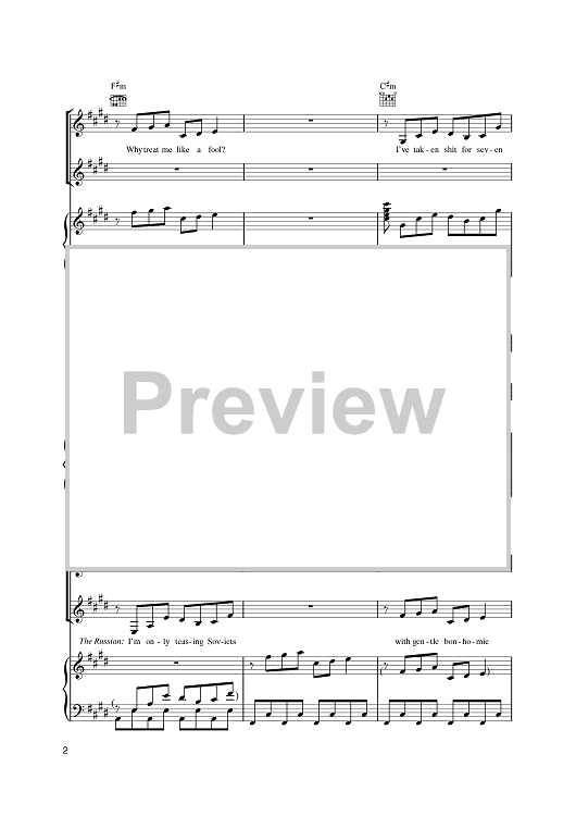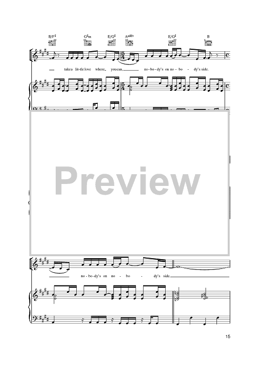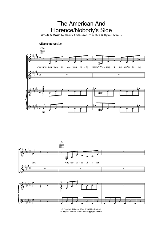 Digital Sheet Music for The American And Florence/Nobody's Side by Tim Rice, Benny Andersson, Bjorn Ulvaeus scored for Piano/Vocal/Chords; id:390818