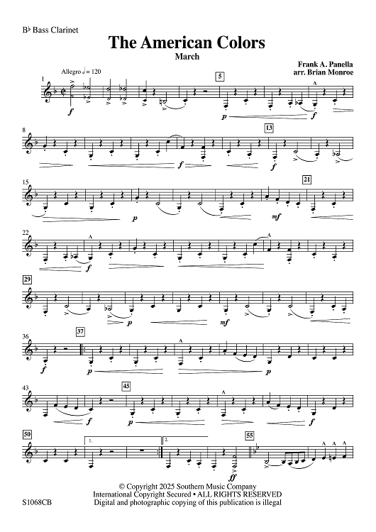 Digital Sheet Music for The American Colors - Bb Bass Clarinet by Brian Monroe, Frank A. Panella scored for Concert Band; id:507257