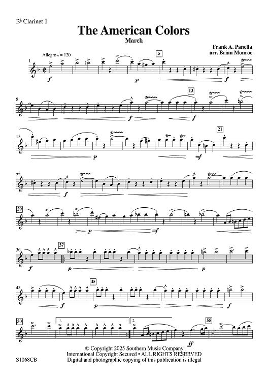 Digital Sheet Music for The American Colors - Bb Clarinet 1 by Brian Monroe, Frank A. Panella scored for Concert Band; id:507254
