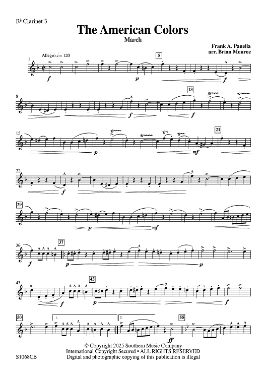 Digital Sheet Music for The American Colors - Bb Clarinet 3 by Brian Monroe, Frank A. Panella scored for Concert Band; id:507256