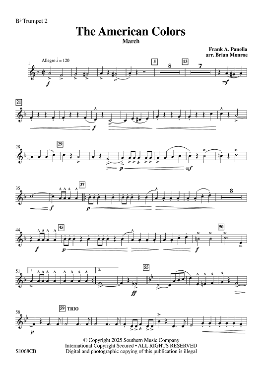 Digital Sheet Music for The American Colors - Bb Trumpet 2 by Brian Monroe, Frank A. Panella scored for Concert Band; id:507265