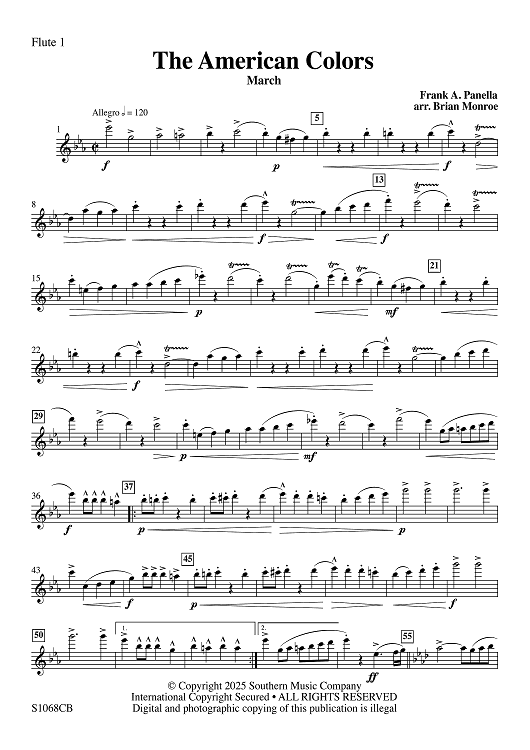 Digital Sheet Music for The American Colors - Flute 1 by Brian Monroe, Frank A. Panella scored for Concert Band; id:507249