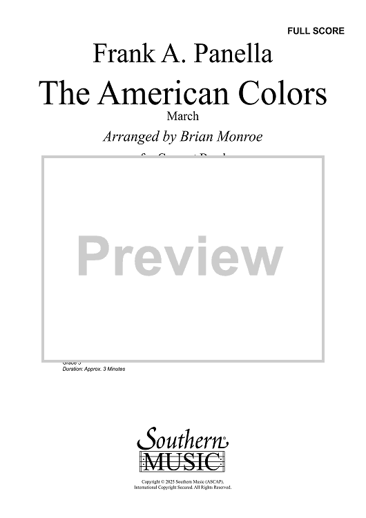 Digital Sheet Music for The American Colors - Full Score by Brian Monroe, Frank A. Panella scored for Concert Band; id:507247
