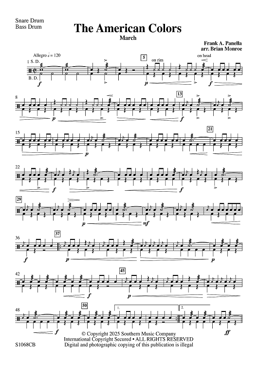 Digital Sheet Music for The American Colors - Snare Drum / Bass Drum by Brian Monroe, Frank A. Panella scored for Concert Band; id:507278