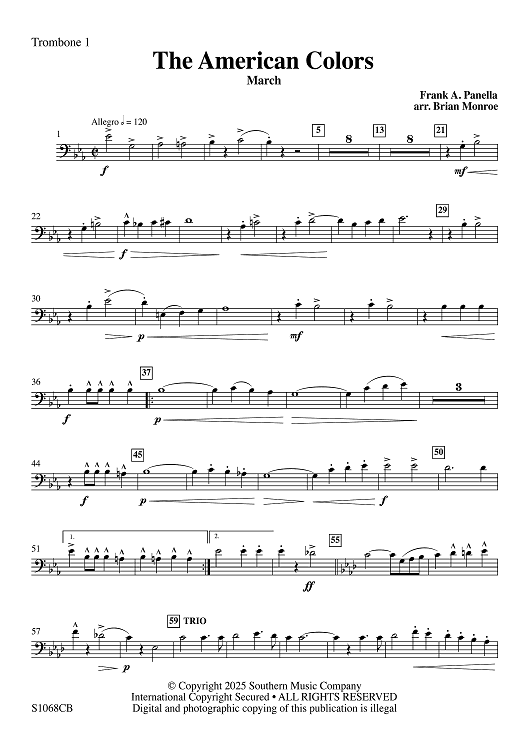 Digital Sheet Music for The American Colors - Trombone 1 by Brian Monroe, Frank A. Panella scored for Concert Band; id:507271