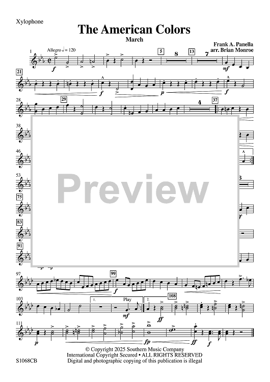 Digital Sheet Music for The American Colors - Xylophone by Brian Monroe, Frank A. Panella scored for Concert Band; id:507277