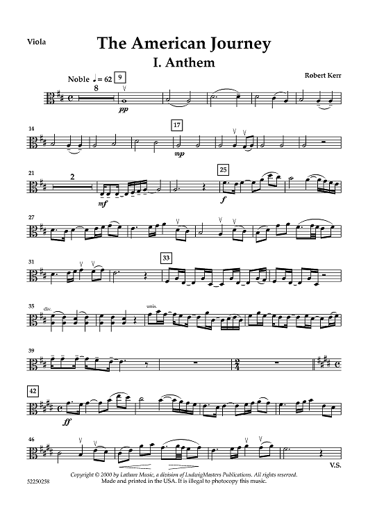"The American Journey - for Piano and String Orchestra - Viola" Sheet Music by Robert Kerr