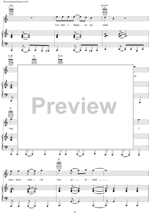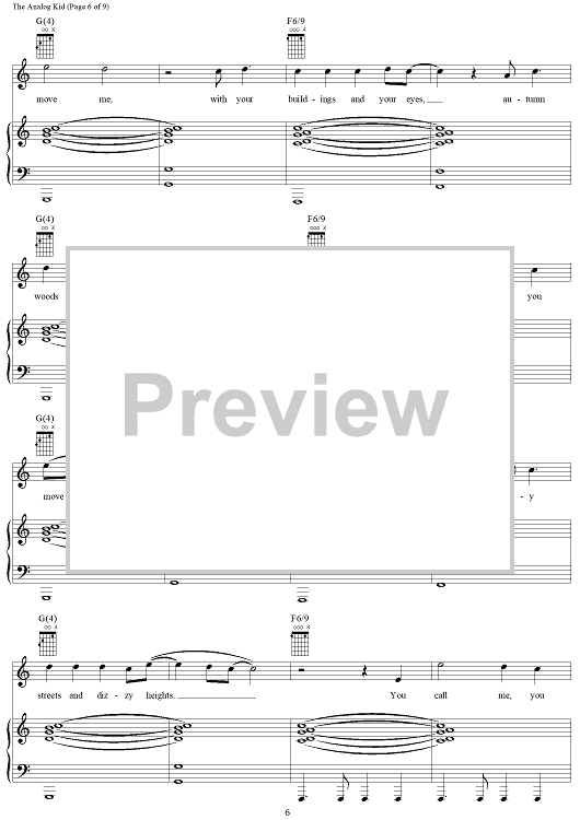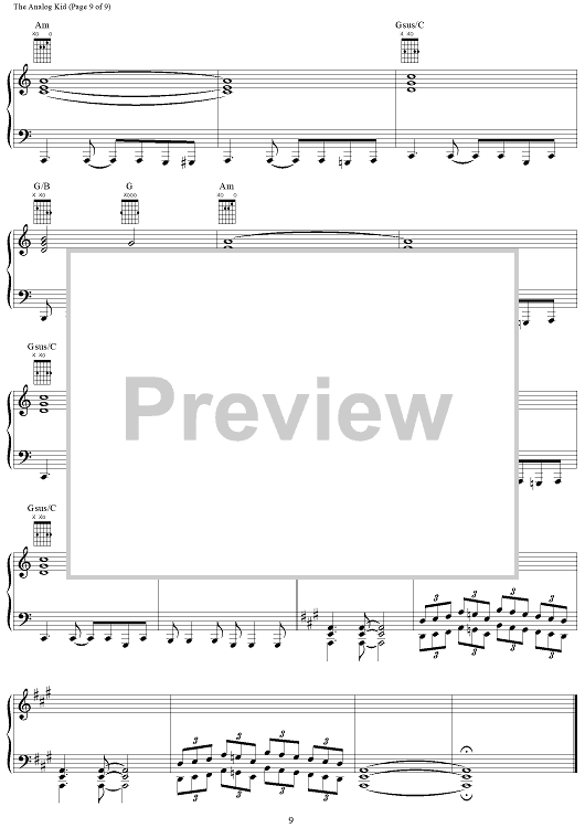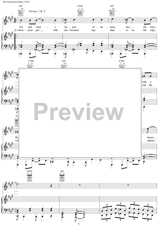 Digital Sheet Music for The Analog Kid by Rush, Geddy Lee, Alex Lifeson, Neil Peart scored for Piano/Vocal/Chords; id:241294
