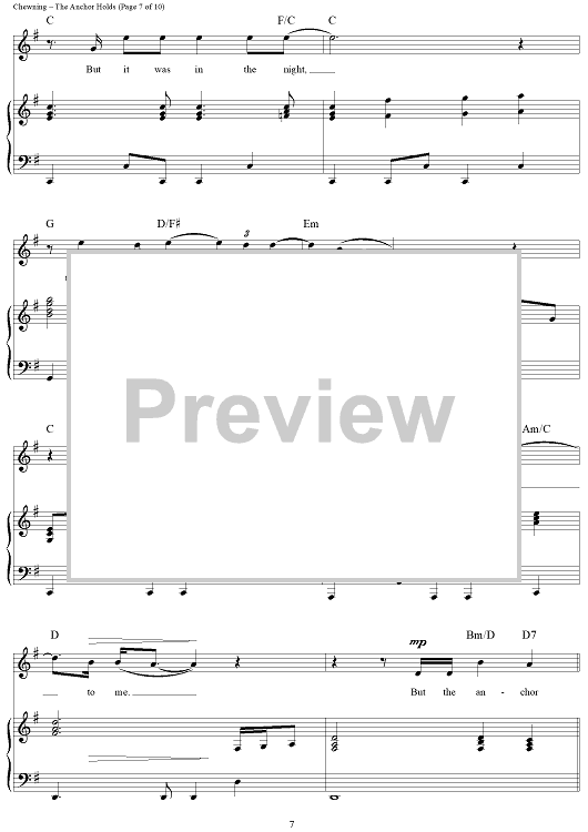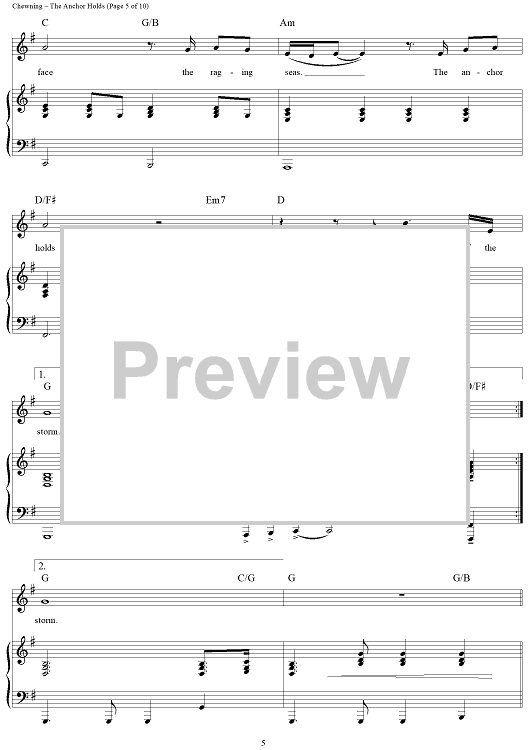 Digital Sheet Music for The Anchor Holds by Ray Boltz, Lawrence Chewning scored for Piano/Vocal/Chords; id:287110