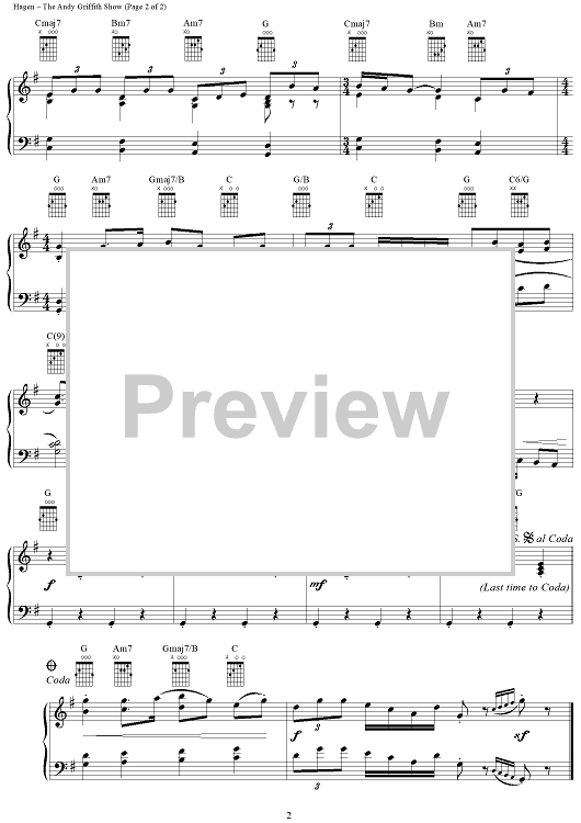 "The Andy Griffith Show" Sheet Music by Earle Hagen
