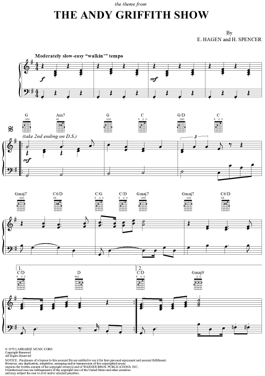 Digital Sheet Music for The Andy Griffith Show by Earle Hagen, H. Spencer scored for Piano Solo; id:289017